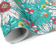 White Teal Yellow Orange Red Daisy Flowers Pattern Wrapping Paper