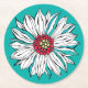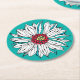 White Teal Yellow Red Daisy Flower Round Paper Coaster