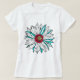 This is a graphic image of a daisy flower with white and turquoise petals and a yellow and red centre.