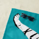 Create a personalised gift for your favourite animal lover. This beach towel features an illustration of a white tiger with black stripes against a bright teal blue or turquoise blue background. It's ready to be personalised with a name in bold white lettering.