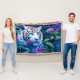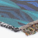 A quality printed throw has its advantages. This is a much finer weave throw than its loopier cousins, and though lighter, it is worth the investment for custom room accessorizing. The back is much prettier than the typical brown, and the fringe on the long sides very vivid, the selvage nicely done. Before photographing, I washed the throw in cold water, delicate, with a thicker woven throw the same size. On tumble dry low, this throw was dry in half the time as the other. This is a very practical quality if you use throws for furniture covers or to wrap up in frequently. The sleekness of the fabric makes it a great layer for accenting or protecting without the feeling of sitting on too much stuff. Perfect for napping or when you feel a light chill coming on. The color printing is beautiful and on this fabric, matched the design and color of my Photoshop image. This is an advantage for blending room fabrics and colors. The fringe on the short sides prints the colors from the design image and therefore varies from the side fringe. I streaked a white fractal line through the plaid pattern to give the illusion of weaving. This printed as crisp as an illusory thread, and put some white in the short side fringe, showing another advantage of print vs loomed- for artistic purposes, line lines, detail, and color integrity can be planned and preserved. My loomed throws have color limitations and more of a needlepoint texture. Print throws reproduce an exact image. The throw felt a little stiff straight out of the package, but this went away in the first delicate wash. Of course I searched the wash water for ink or bleeding and there was none.