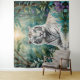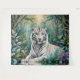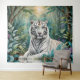 Whit tiger with blue eyes and golden stripess in a blue green rainforest jungle watercolor