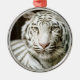 This beautiful creature is a magnificent albino tiger - pure white with dark stripes and vivid blue eyes.