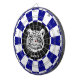 White tiger on navy blue and white Dart Board. Text can be personalised.