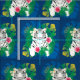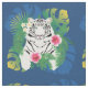 White tiger portrait with tropical leaves fabric