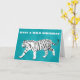 Send some wild birthday greetings or customise the message on the front and the inside of this greeting card to use it for any occasion. This card features an illustration of a white tiger with black stripes set against a bright teal blue or turquoise blue background. The message on the front in bold white lettering and the message inside in black lettering are ready for your custom touch.