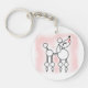 Acrylic keychain with a snooty poodle illustration. A stylised poodle with pom poms and a pout on a powdery pink background.