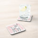 Hard plastic coaster with a snooty poodle illustration. A stylised poodle with pom poms and a pout on a powdery pink background.