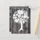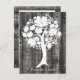 Rustic but very elegant save the date card, featuring a whimsical white tree and a background image of old grey wood.