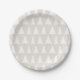 Add rustic flair to your holiday party with paper plates featuring a modern white geometric tree pattern on a beige printed faux canvas background. Perfect for Christmas.