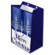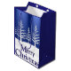 Medium Christmas gift bag with white pine tree silhouettes on snowy hills against a midnight blue sky and "Merry Christmas" greeting.