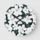 White Tropical Flowers Pattern Round Clock