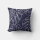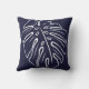 White Tropical Leaf Motif On Dark Navy Blue Cushion
