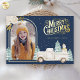 White Truck Snowman Christmas Photo Navy Blue Gold