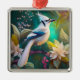 White Tufted Teal Wing Jay Fantasy Bird Metal Tree Decoration