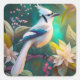 White Tufted Teal Wing Jay Fantasy Bird Square Sticker