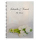Customise the pretty White Tulip Bouquet Wedding Spiral Notebook with the personal names of the bride and groom and March, April or May springtime marriage ceremony date to create a one of a kind guest book or advice book. This classy customised botanical nuptial note book features a floral photograph of a bouquet of white spring tulip flower blossoms, white pearl necklace and bridal veil with a white satin background.