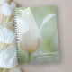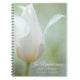 Invite guests to leave a note in remembrance of your loved-one after their passing with the elegant White Tulip Spring Funeral Memorial Guest Book. This classy custom flowery celebration of life tribute notebook features a close up digitally painted floral photograph of a white tulip flower blossom on the stem with a blurred green botanical garden in the background. Personalise it with birth and death date and name. Perfect inspo or idea for a March, April or May springtime season event.