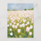 White Tulips Flower Field Painting Postcard
