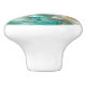 White Turquoise Aquamarine Gold Lotus Lily Flower Ceramic Knob
