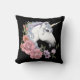 White Unicorn Flowers Pink Black Cushion