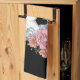 White Unicorn Flowers Pink Black Tea Towel