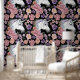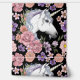 White Unicorn Flowers Pink Black Wallpaper