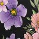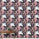 A white unicorn with pink, peach and lavender coloured flowers all in a backdrop of black