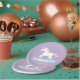 Purple party paper plates that have a cute white unicorn with pastel red, blue and yellow mane. Perfect for the birthday girl who wants a enchanting and magical unicorn themed birthday party! Personalise including the text on the banner with tiny hearts!