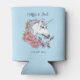 white unicorn Pink flowers Blue Can Cooler