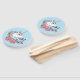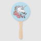 A white unicorn in profile is surrounded by pink, coral, and lavender flowers against a soft blue background.