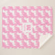 White Unicorn Silhouette Pattern Pink Personalised Girls Sherpa Blanket. Three sizes. Customise to change background colour from pink to another colour. Personalise with name and initial on a pattern of pretty white unicorn silhouettes. www.SamAnnDesigns.com