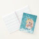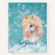 This pretty notebook would make a wonderful gift for any girl who loves unicorns! The front features a beautiful white unicorn portrait against a teal sky with white snowflakes. Fluffy white clouds surround the unicorn at the bottom, with the darker teal script that says "Believe". The back has the same unicorn laying down in the clouds, with a bouquet of flowers at his side. Your child's name or other text is at the upper corner.