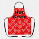 This apron has a mid-century modern Valentine’s design of scattered white heart mazes on a field of red. Keep the text, change it, or delete it completely.