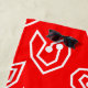 This beach towel has a mid-century modern Valentine’s design of scattered white heart mazes on a field of red.