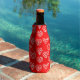 This bottle cooler has a mid-century modern Valentine’s design of scattered white heart mazes on a field of red.