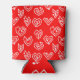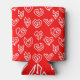 This can cooler has a mid-century modern Valentine’s design of scattered white heart mazes on a field of red.