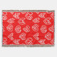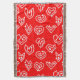 This throw blanket has a mid-century modern Valentine’s design of scattered white heart mazes on a field of red.