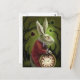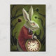 White Rabbit from Alice in Wonderland -A children's Book timeless classic fairytale character brought back to life...from the dead. Vampire Rabbit is looking slightly devious. He is wearing a red velvet coat and a purple bow tie and standing beside a large pocket watch. The green background contains thorny rose trees. This painting is eerie, dreamy and romantic.