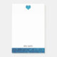 White w/ Teal Faux Glitter Heart & Border + Name Post-it Notes