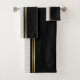 One side of these elegant towels is solid jet black and the other side is a sea of ripples, with a gold border stripe between! This distinctive towel set will add delightful colour and style to your bath decor! A great way to start your day in style!