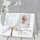 Add your own personal note of thanks, gratitude and appreciation for condolences after the death and loss of a loved one inside the pretty White Water Lily Funeral Sympathy Thank You Note Card. This elegant custom flowery sympathy thank you note features a close up digitally painted floral photograph of a white water lily flower with light blue highlights on the stem with a white background. Feel free to change the inside message and personalise with your family name and photograph of the deceased.