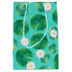 White Water Lily Flowers & Lily Pad Pattern Medium Gift Bag