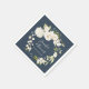 White Watercolor Floral Wreath on Navy Wedding Napkin