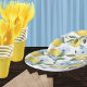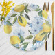 Elegant and Sweet White Watercolor Lemon and Flower Paper Plates. Featuring beautiful elegant dusty slate blue background with watercolor flowers and sweet yellow lemons. Available in 2 size options. Great for any lemon themed event such as a lemon birthday, "Little Lemon" baby shower or a "Main Squeeze" bridal shower!