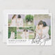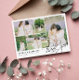 Beautiful wedding thank you card featuring a photo collage to which you can add five of your wedding photos. Thank you is written in a gorgeous calligraphy script in the bottom right corner, with loops. Add your names and wedding date and location in an elegant font. The back is lined so you can write a personal message by hand.