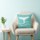 part of the ocean themed decor white whale tail on teal blue pillow on one side and teal and white strip on back.