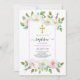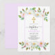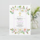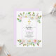 White and pink wild dog rose lavender floral girl baptism invitation. This design showcases garlands of watercolor white and blush pink dog roses with green leaves on the upper and bottom parts and your text in a lavender purple frame. The back is of pale lavender colour.