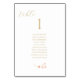 Elegant, fresh and modern. This simple and elegant table number card with guestlist features a whimsical line drawn wildflower and a contemporary set of fonts in a faux gold, against a crisp white background. The front design is repeated at the back for better table visibility. Alternatively mount the full set of cards together on a display board. This design includes 10 names, however 12 names (max) still fits.