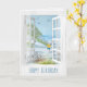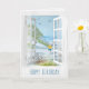 white window and curtain seashore scene birthday card